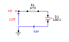 ont utilise une résistance de 470 ohms Iled = ( 12 - 1,8 ) / 470 = 0,21