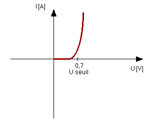 Il y a une tension de seuil qui apparaît 0,6 V à 0,7 V environ