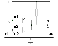 ; si e1 et e2 sont au + c'est a dire au niveau haut la sortie s = 1 donc aussi