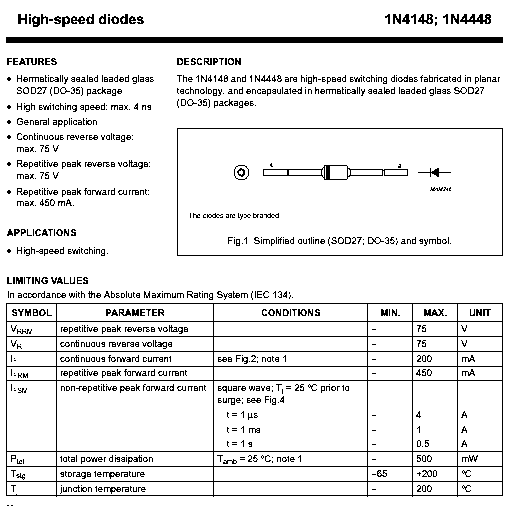 Une diode souvent rencontré , la diode de commutation au Silicium 1N4148